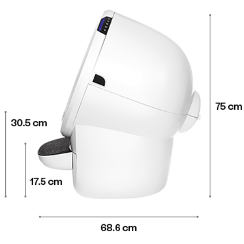 Litter-Robot 4 does not have a weight limit and is suitable for most cats, including large breeds like Maine Coons or Norwegian Forest cats, making it one of the best litter box for large cats. With entryway dimensions of 40cm Height x 40 cm Width and interior globe dimensions of 38-43 cm Height (depending on litter level) x 48.2 cm Width x 45.7 cm Depth, almost any domestic cat can fit comfortably inside the globe.